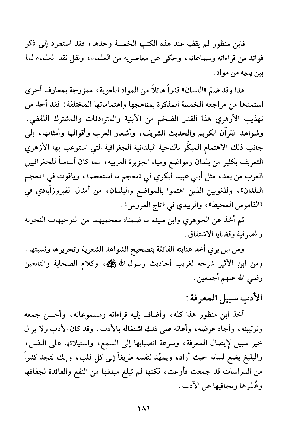 فابن منظور لم يقف عند هذه الكتب الخمسة وحدها، فقد استطرد إلى ذكر