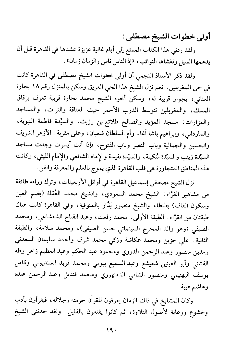 نزل الشيخ مصطفى إسماعيل القاهرة في أوائل الأربعينات، وترك وراءه طائفة