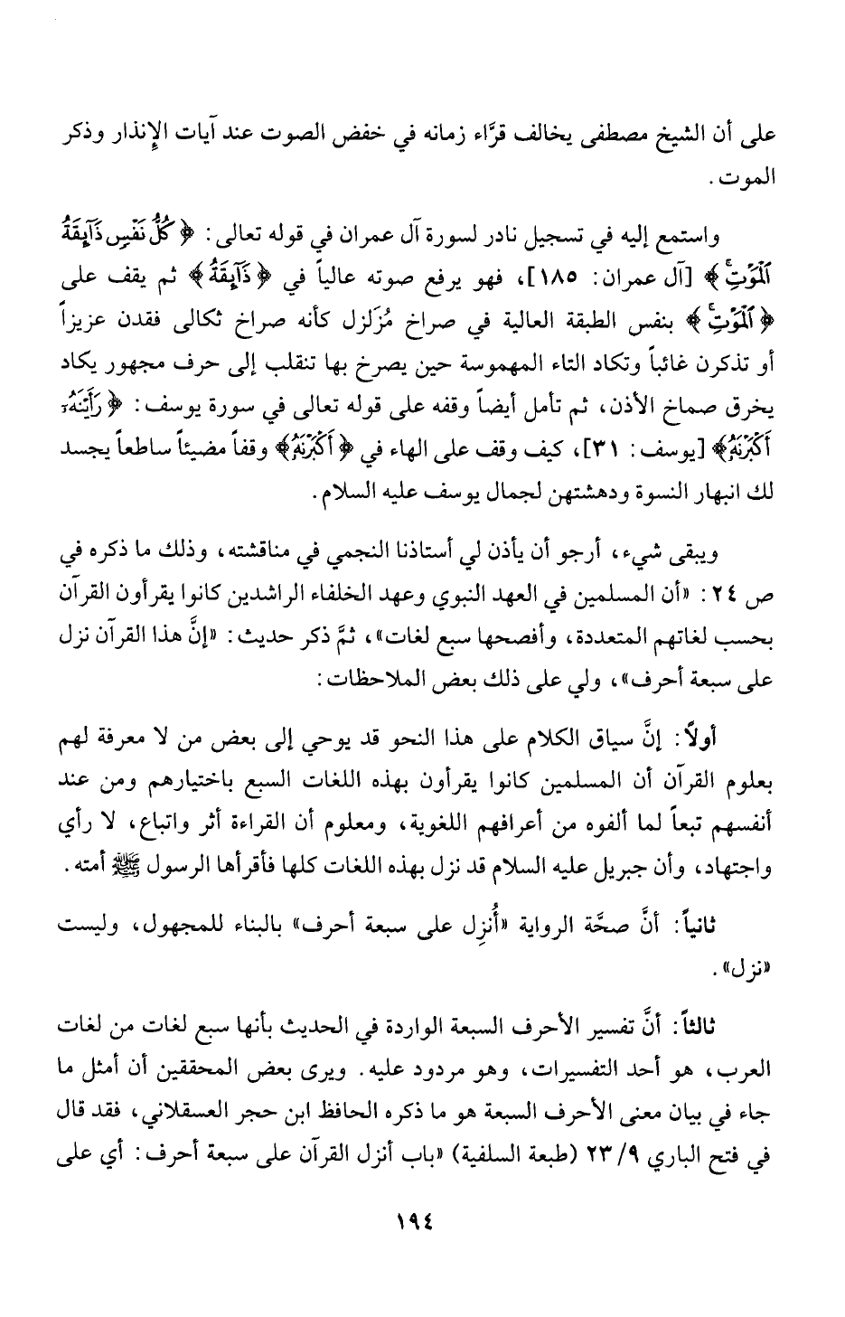 على سبعة أحرف "، ولي على ذلك بعض الملاحظات: