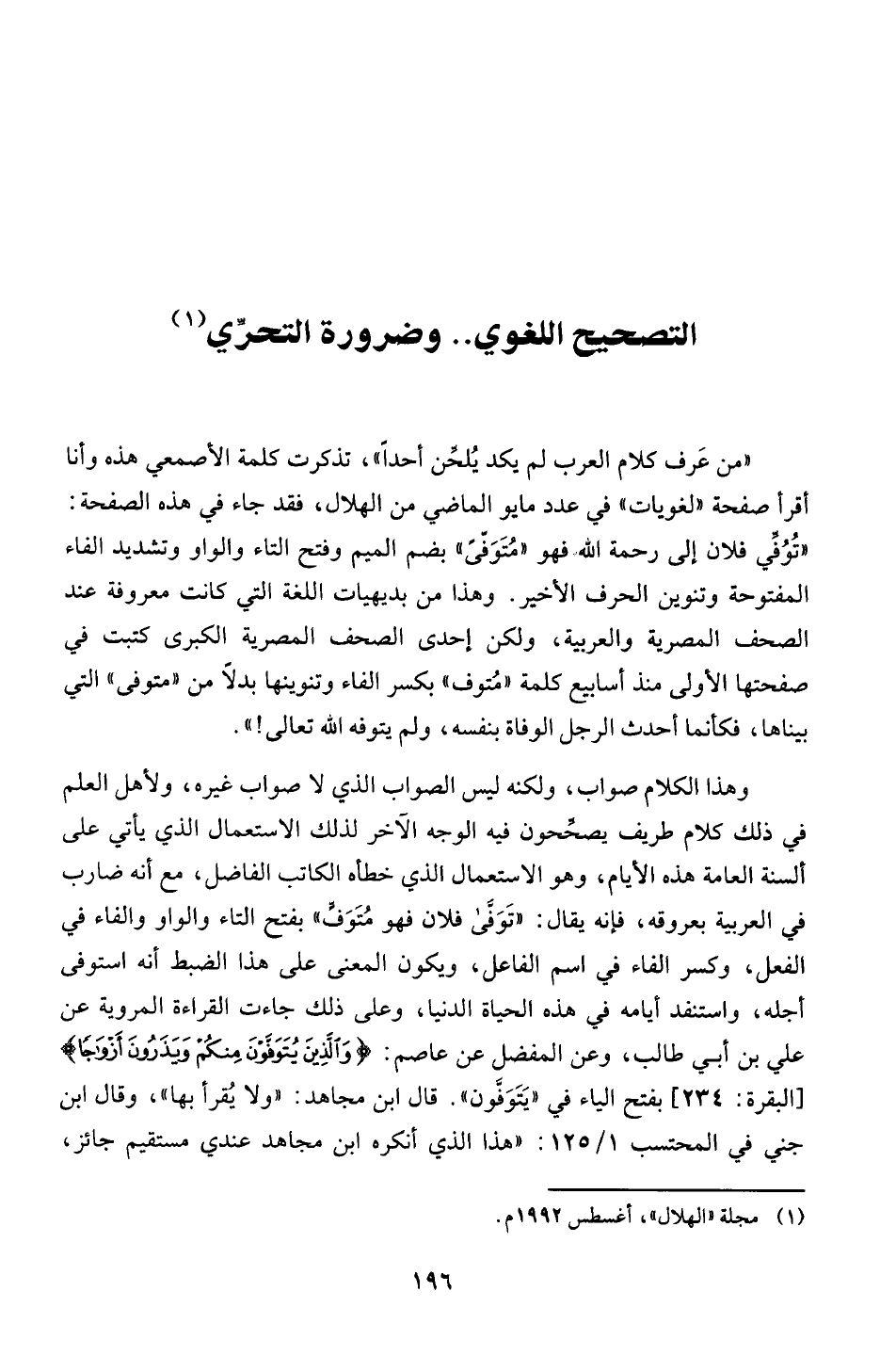 اقرا صفحة "لغويات " في عدد مايو الماضي من الهلال، فقد جاء في هذه الصفحة: