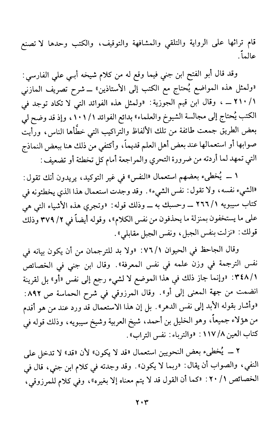 التي تمهد لما أردته من ضرورة التحري والمراجعة امام كل تخطئة أو تضعيف: