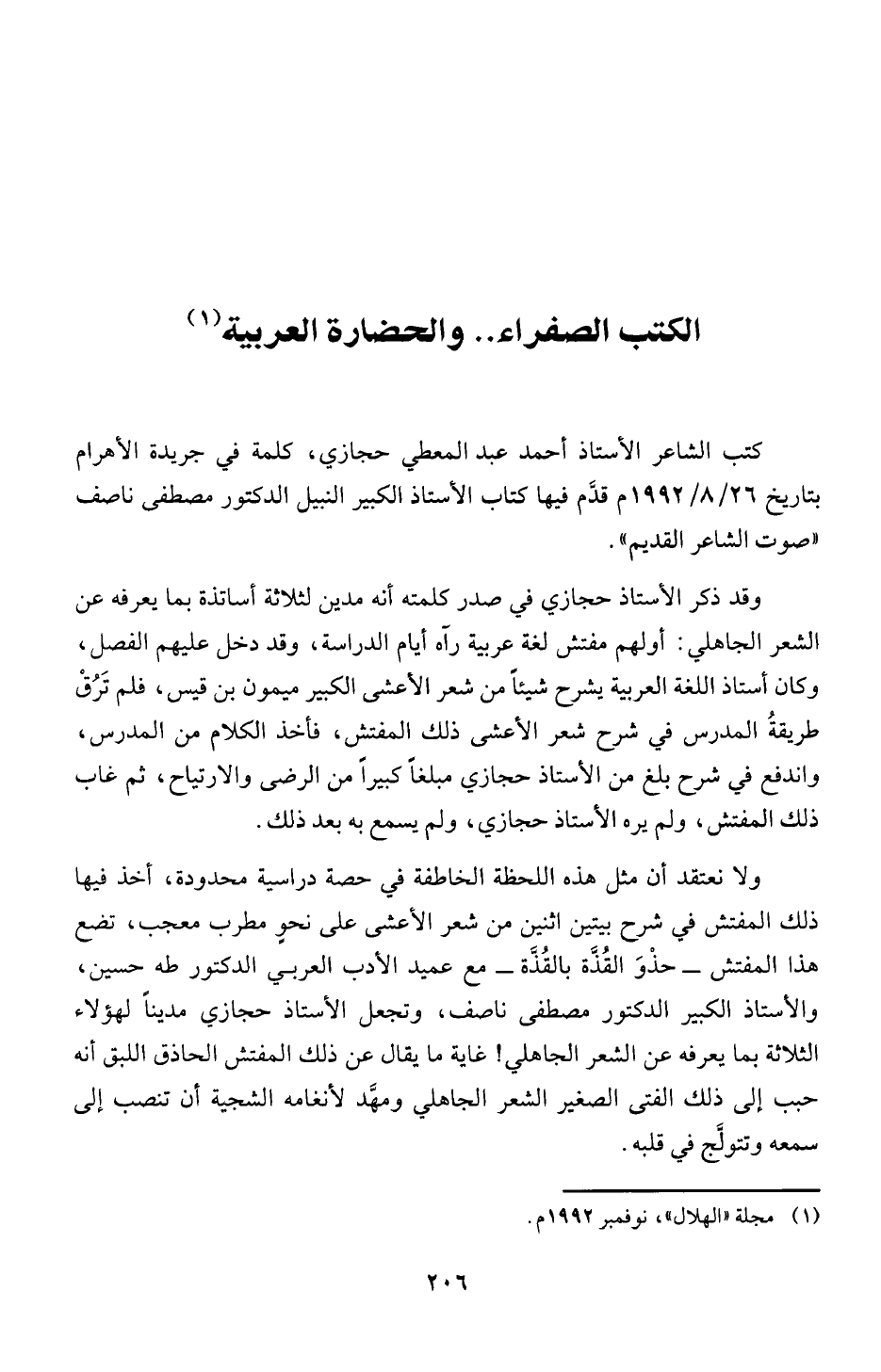 والأستاذ الكبير الدكتور مصطفى ناصف، وتجعل الأستاذ حجازي مدينا لهؤلاء