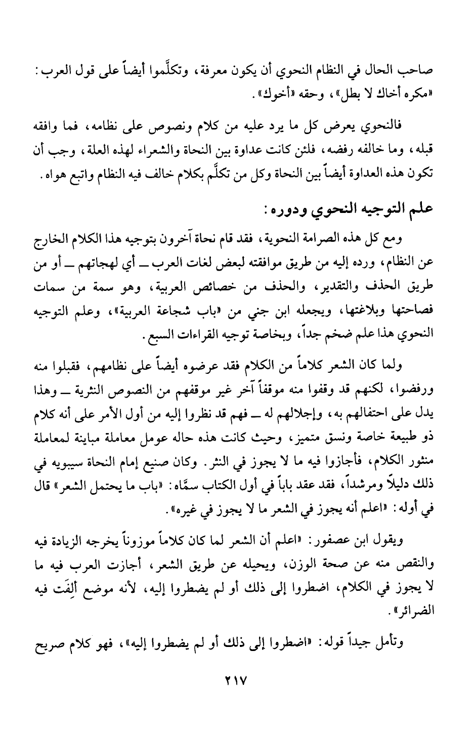 فصاحتها وبلاغتها، ويجعله ابن جني من (باب شجاعة العربية "، وعلم التوجيه