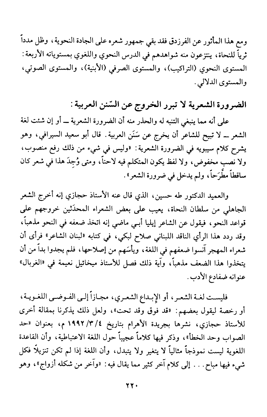 الضرورة الشعرية لا تبرر الخروج عن السّنن العربية: