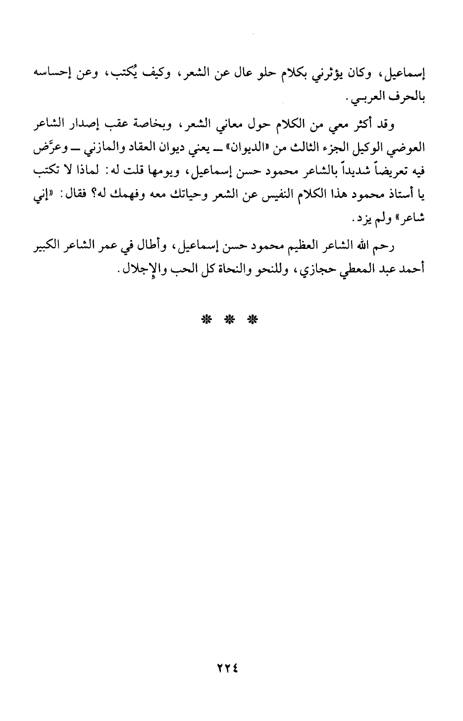 إسماعيل، وكان يؤثرني بكلام حلو عال عن الشعر، وكيف يُكتب، وعن إحساسه
