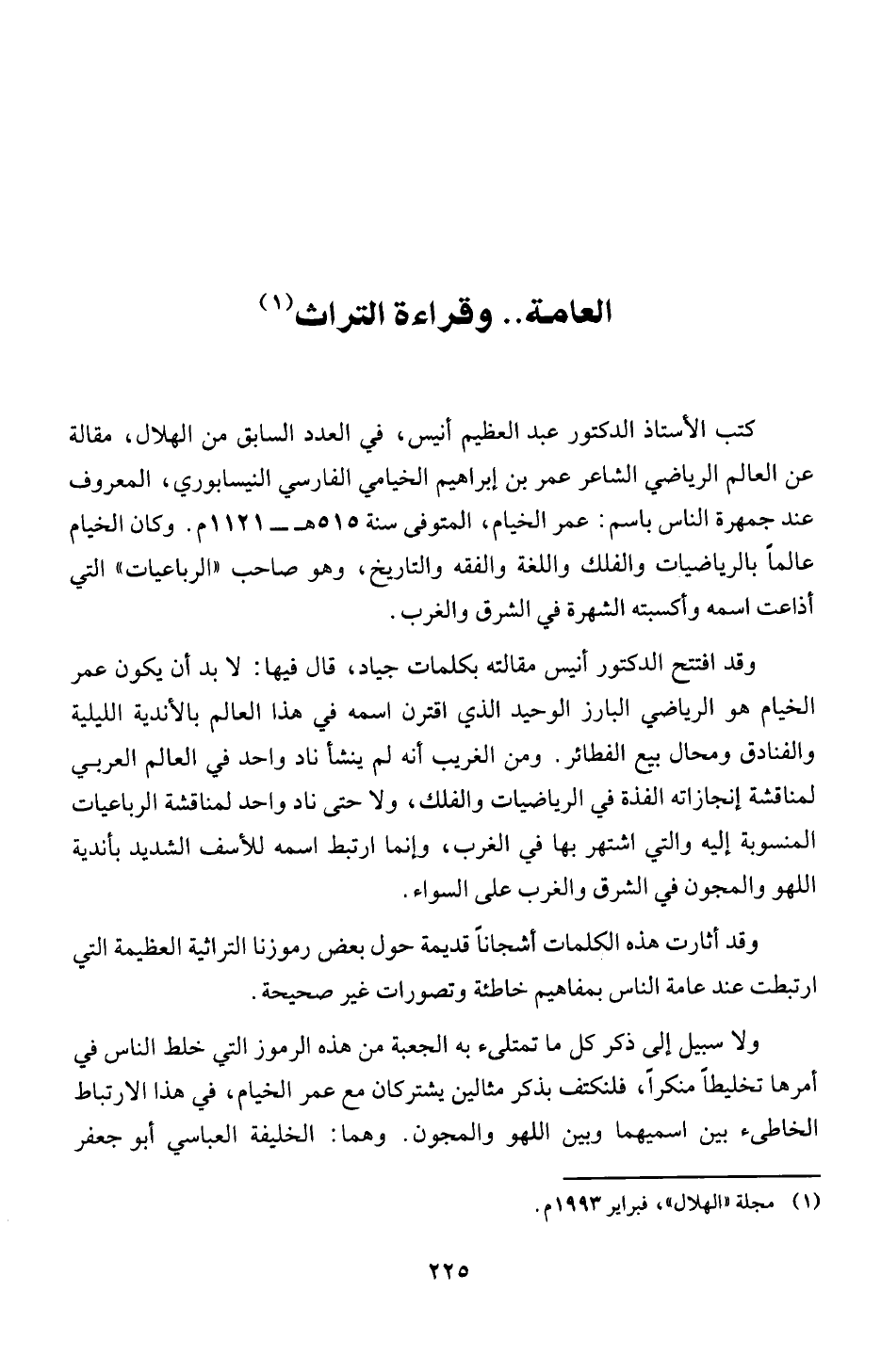 كتب الأستاذ الدكتور عبد العظيم أنيس، في العدد السابق من الهلال، مقالة