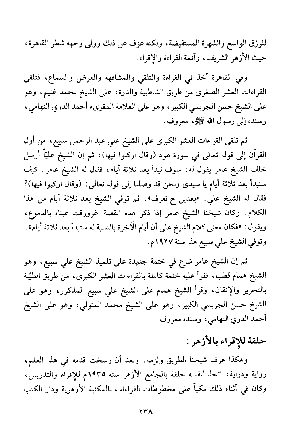 حيث الأزهر الشريف، وأئمة القراءة والِإقراء.