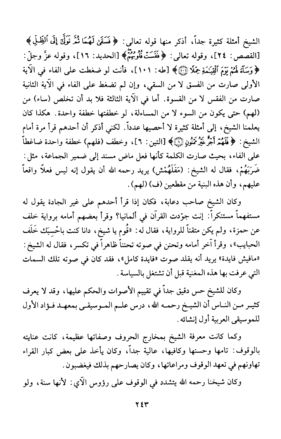 وكان شيخنا رحمه الله يتشدد في الوقوف على رؤوس الاي: لأنها سنة، ولو