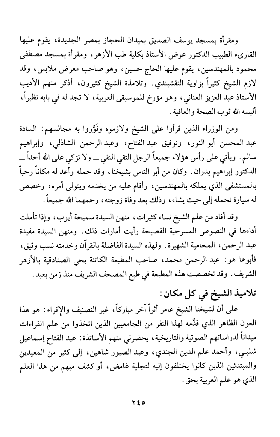 وقد أفاد من علم الشيخ نساء كثيراب، منهن السيدة سميحة ايوب، وإذا تأملت