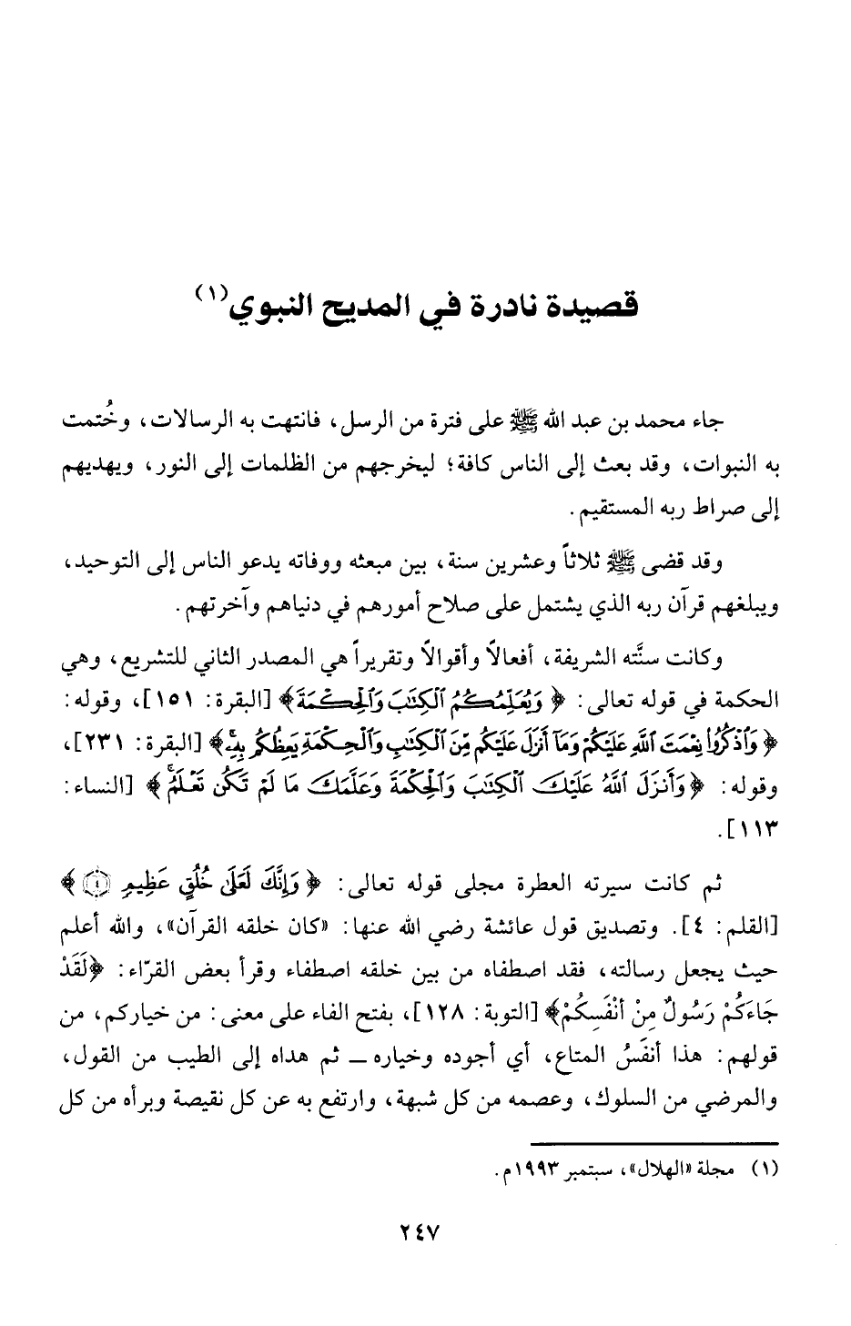 (1) مجلة "الهلال"، سبتمبر 93 9 1 م.