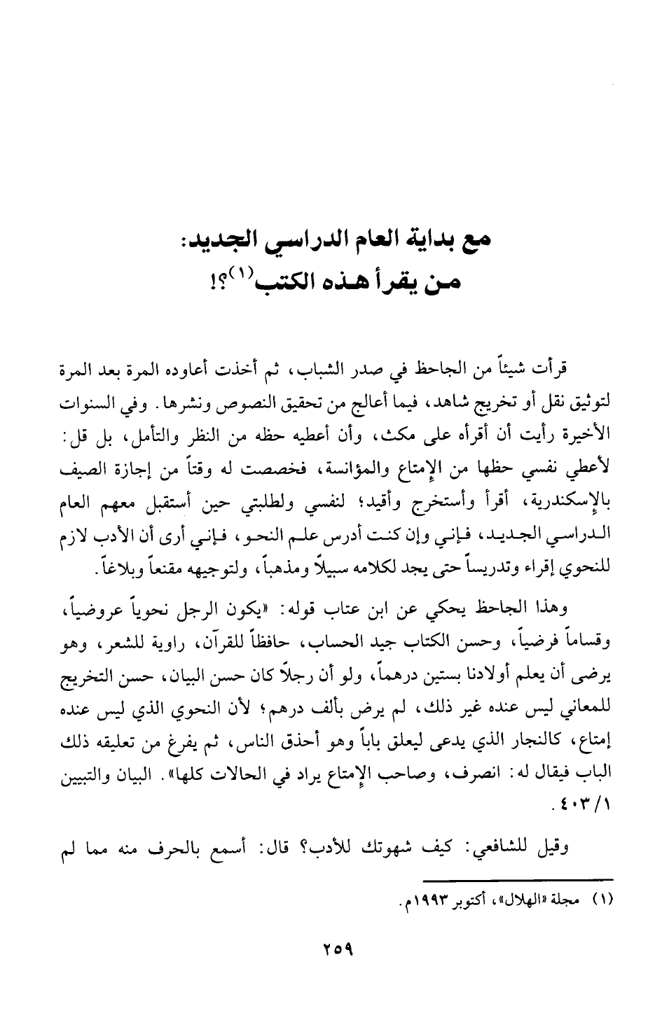 قرات شيعأ من الجاحظ في صدر الشباب، ثم أخذت أعاوده المرة بعد المرة