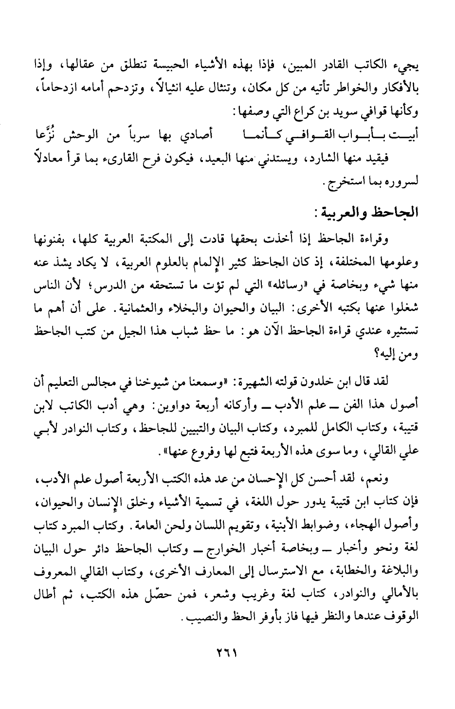 وقراءة الجاحط إذا اخذت بحقها قادت إلى المكتبة العربية كلها، بفنونها