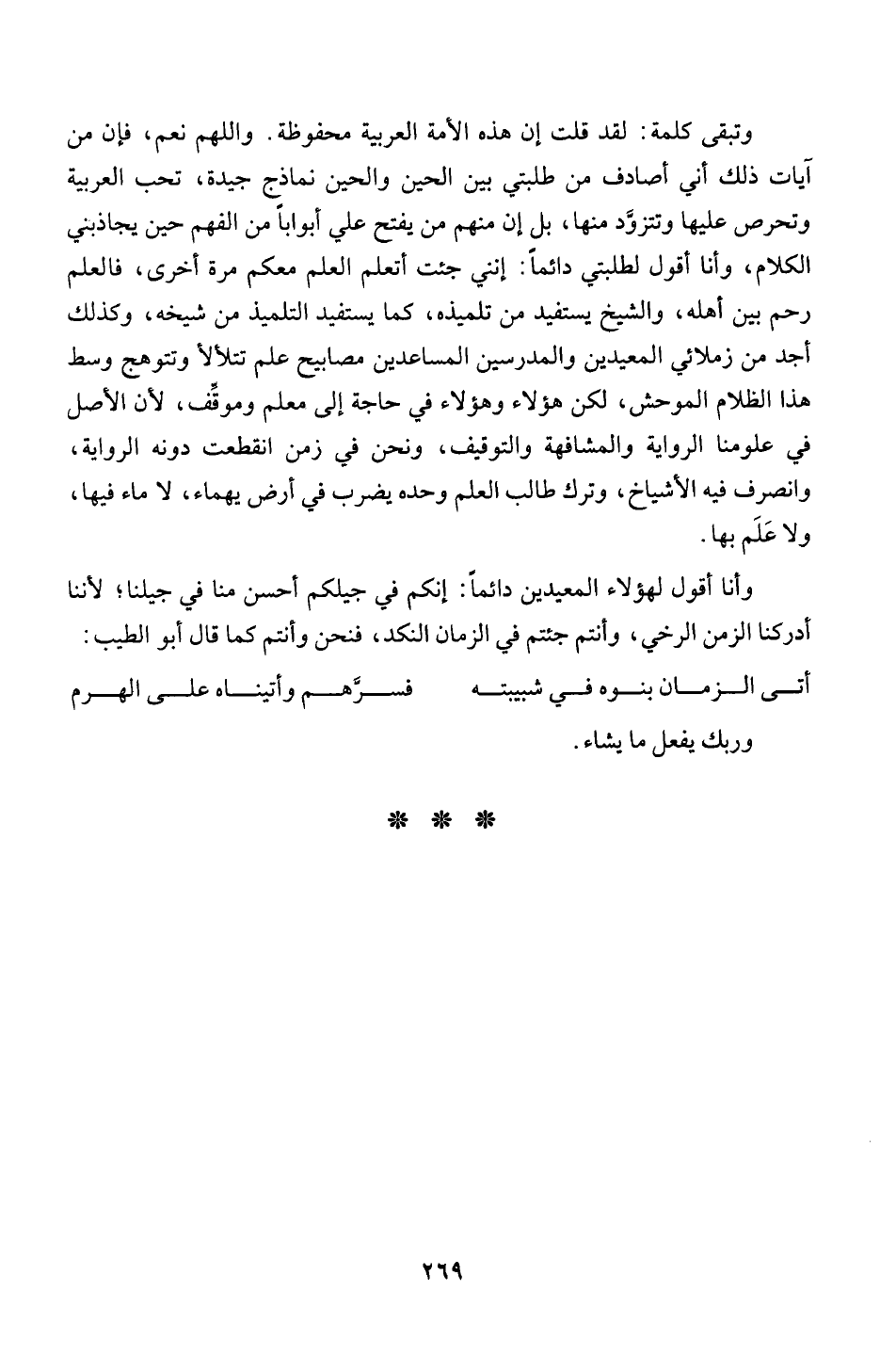 الكلام، وأنا أقول لطلبتي دائماَ: إنني جئت أتعلم العلم معكم مرة اخرى، فالعلم