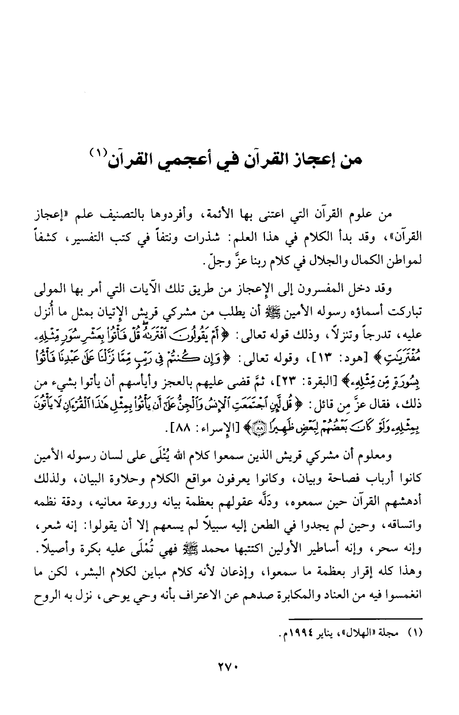 (1) مجلة "الهلال"، ينا ير 4 9 9 1 م.