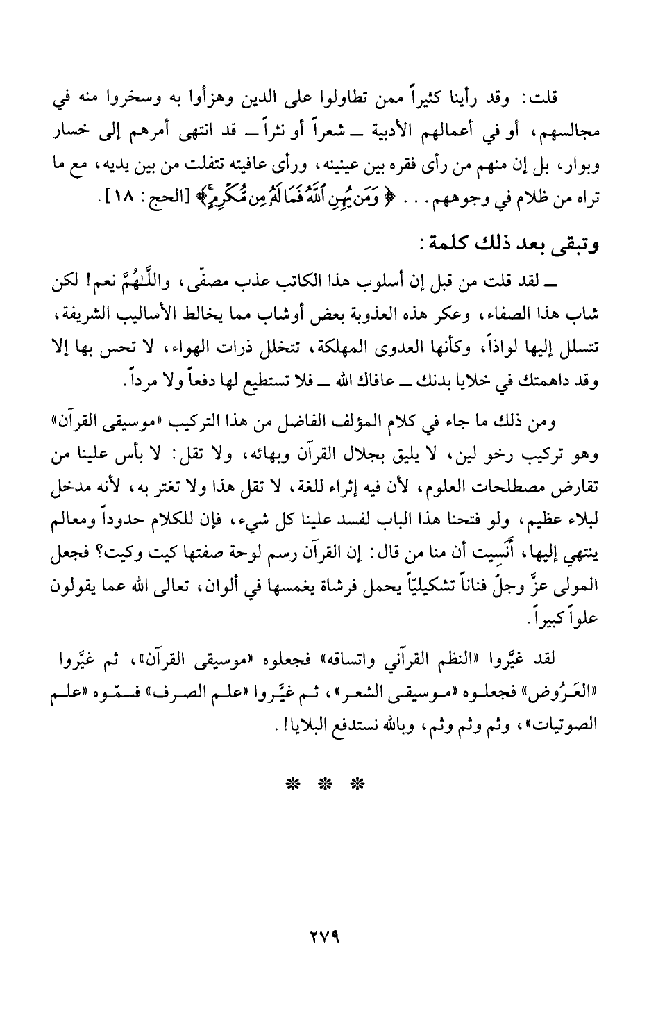 شاب هذا الصفاء، وعكر هذه العذوبة بعض أوشاب مما يخالط الأساليب الشريفة،