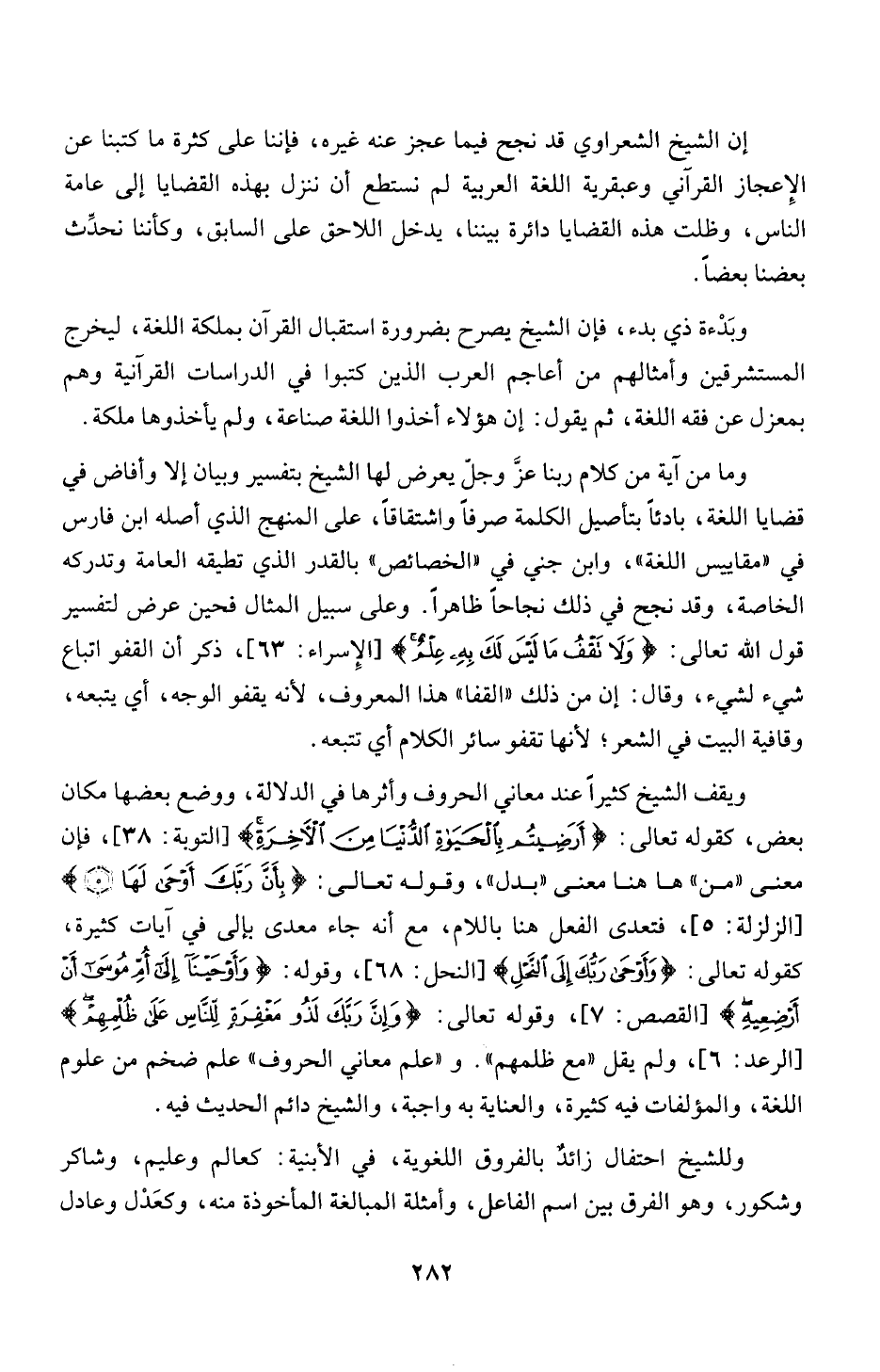 وما من آية من كلام ربنا عزَّ وجلّ يعرض لها الشيخ بتفسير وبيان إلا وأفاض في