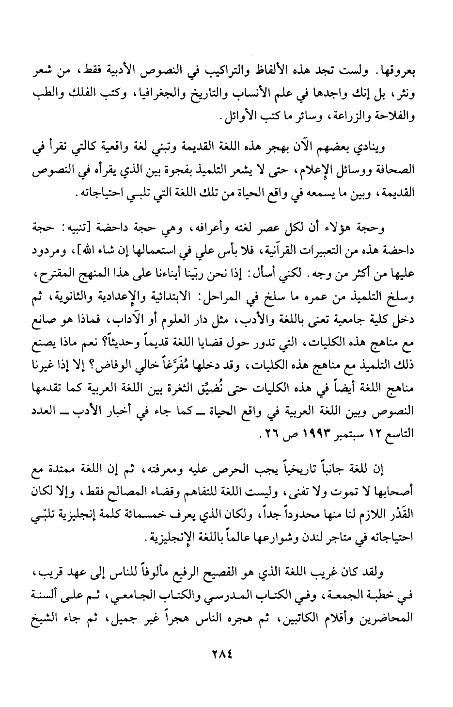 النصوص وبين اللغة العربية في واقع الحياة -كما جاء في أخبار الأدب - العدد