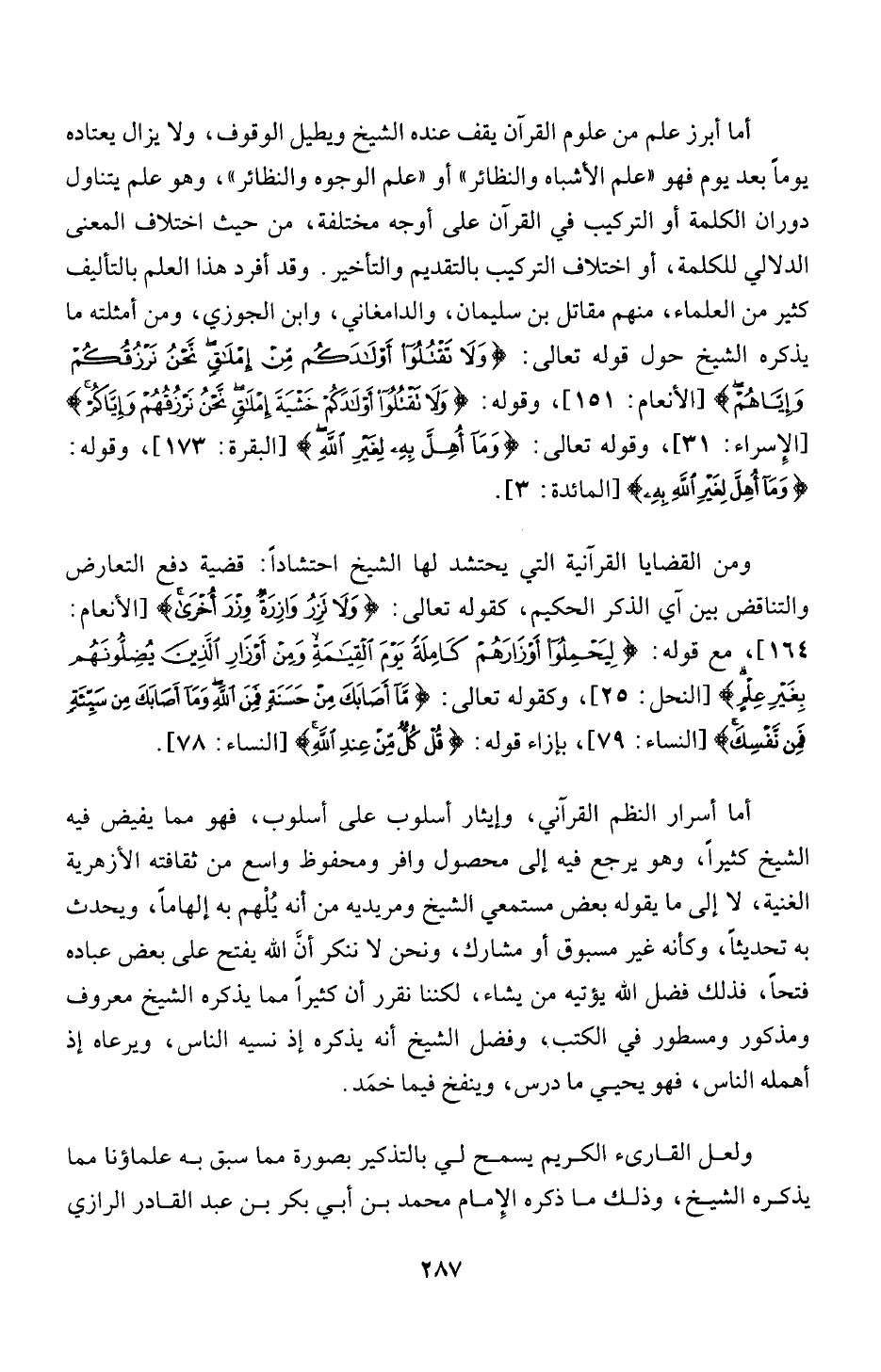 الشيخ كثيراً، وهو يرجع فيه إلى محصول وافر ومحفوظ واسع من ثقافته الأزهرية