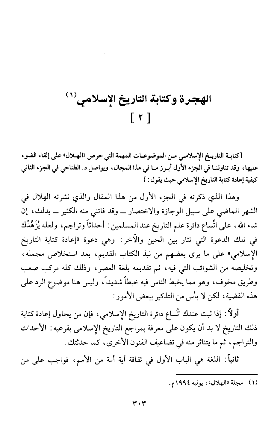 (كتابة التاريخ الِإسلامي من الموضوعات المهمة التي حرص "الهلال" على إلقاء الضوء