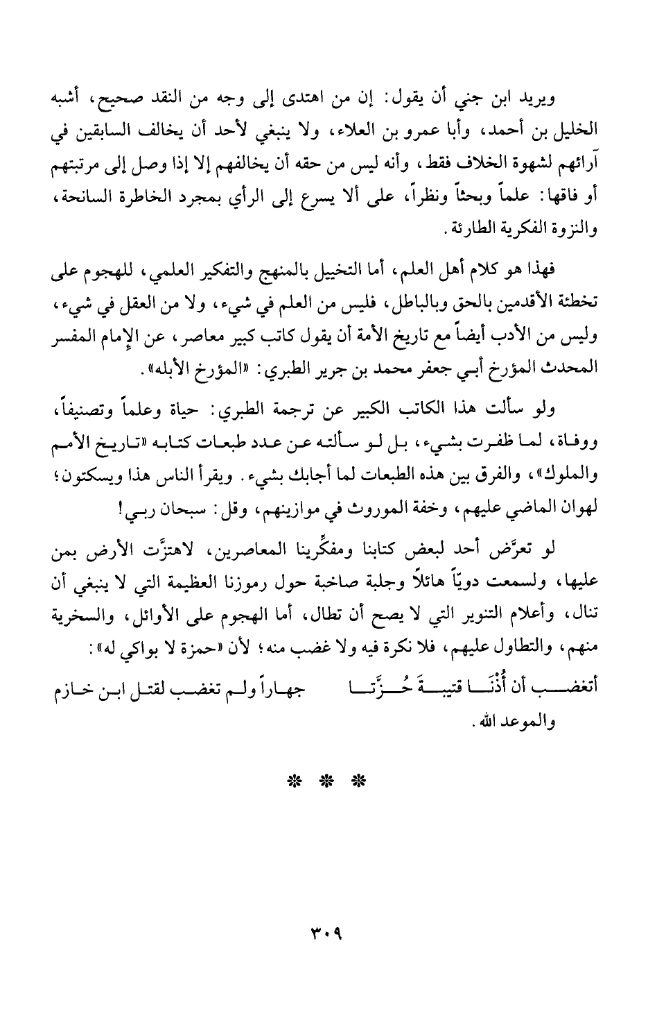 وليس من الأدب أيضاً مع تاريخ الأمة أن يفول كاتب كبير معاصر، عن الِإمام المفسر