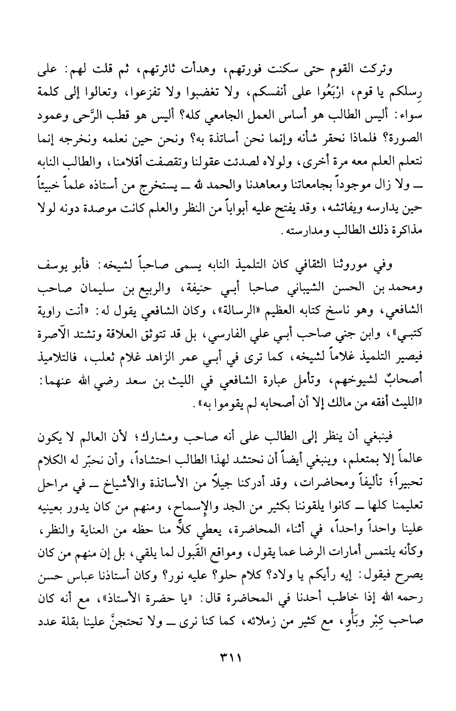 عالماً إلا بمتعلم، وينبغي أيضاً أن نحتشد لهذا الطالب احتشاداً، وان نحبّر له الكلام