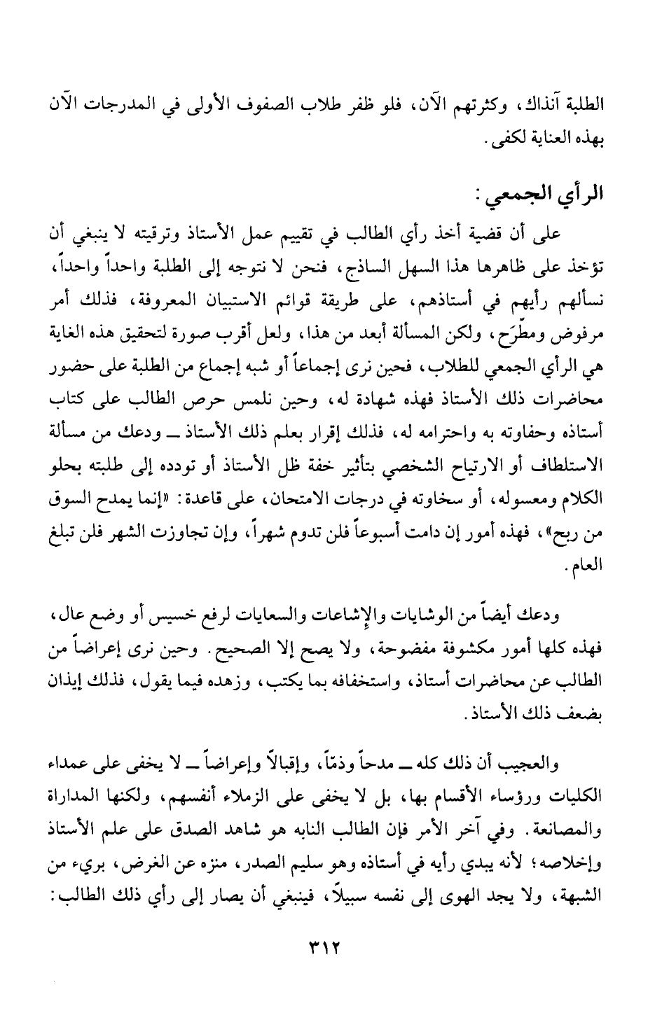 على ان قضية أخذ رأي الطالب في تقييم عمل الأستاذ وترقيته لا ينبغي أ ن