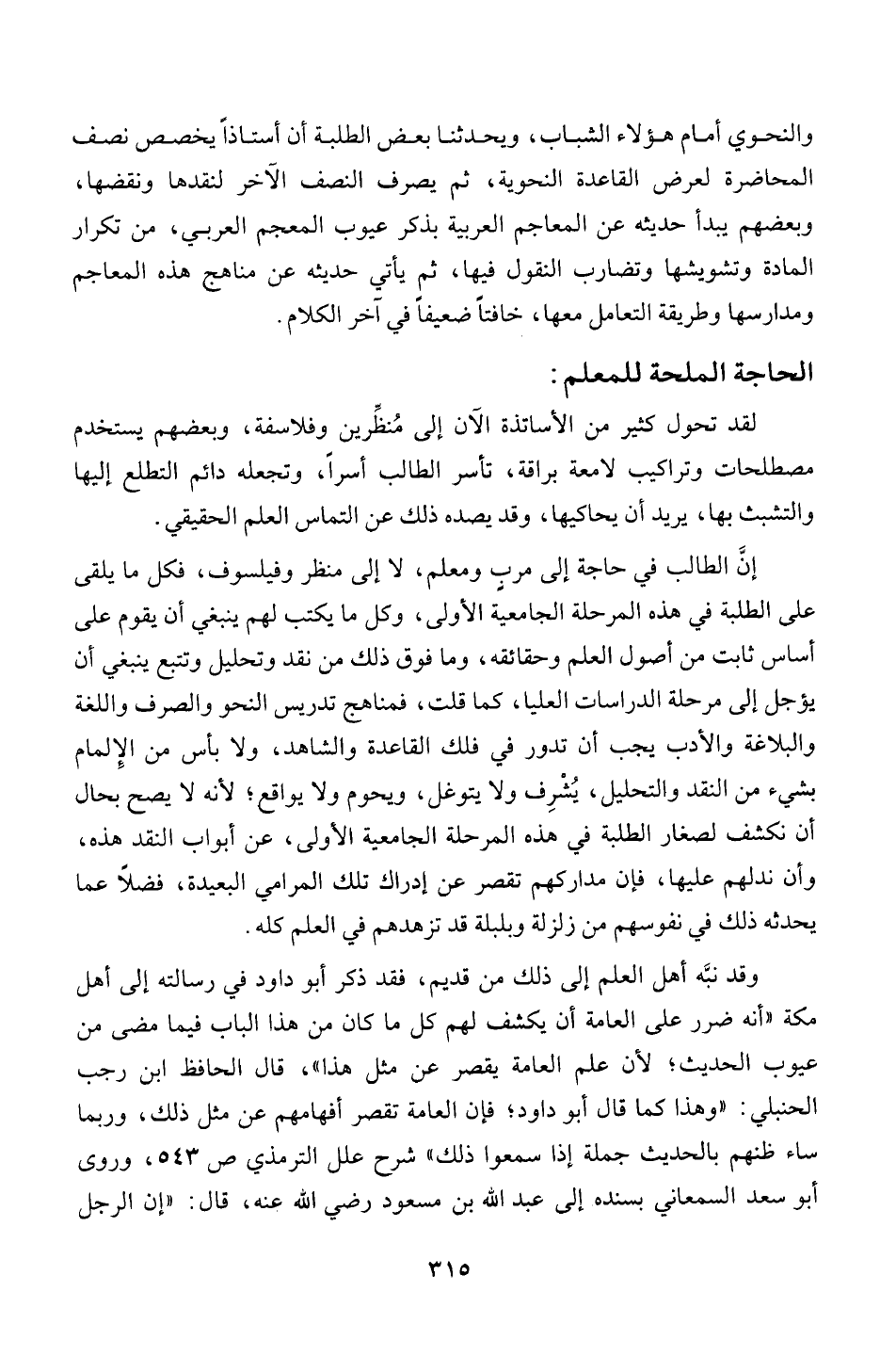 والنحوي أمام هؤلاء الشباب، ويحدثنا بعض الطلبة أن أستاذاَ يخصص نصف