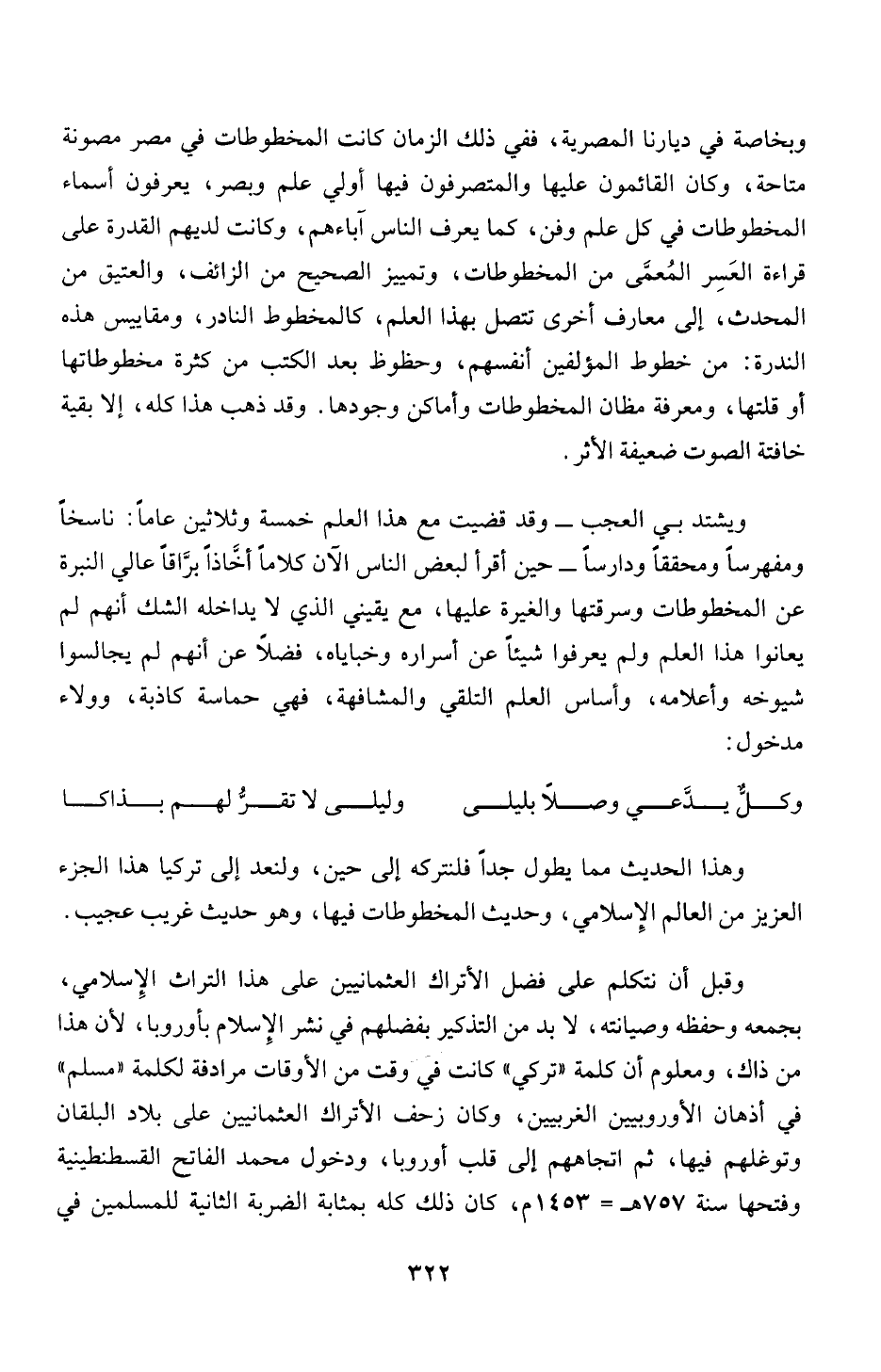 ويشتد بي العجب - وقد قضيت مع هذا العلم خمسة وثلاثين عاماً: ناسخاً