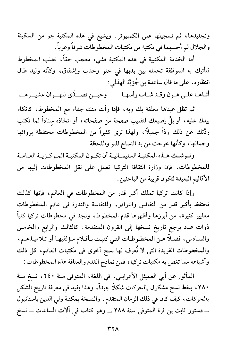 اما الخدمة المكتبية في هذه المكتبة فشيء معجب حقاً، تطلب المخطوط