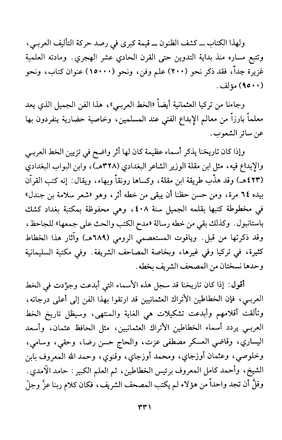 ولهذا الكتاب - كشف الظنون - قيمة كبرى في رصد حركة التأليف العربي،