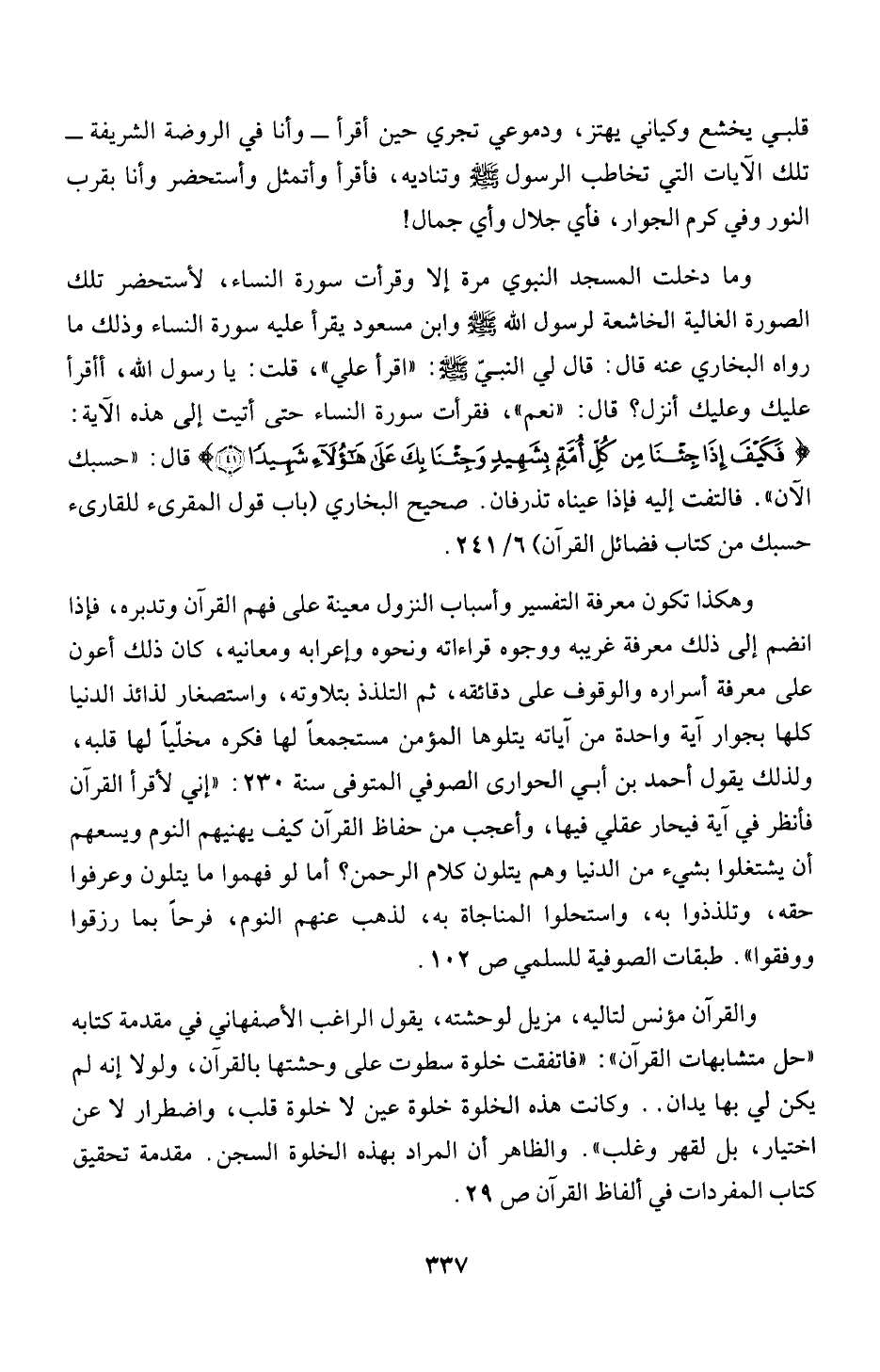 ولذلك يقول أحمد بن ابي الحوارى الصوفي المتوفى سنة 230: "إني لأقرأ القرآن