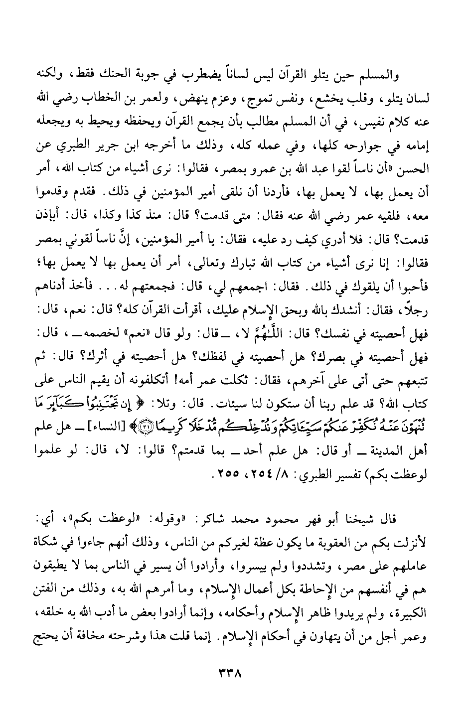 عنه كلام نفيس، في أن المسلم مطالب بأن يجمع القرآن ويحفظه ويحيط به ويجعله