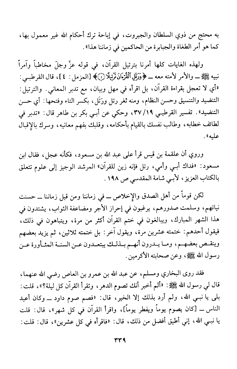 نبيه غ! ير - والأمر لأمته معه - "وَرَتِلِ اَتقز انَ ئرتلا/ص!) ا"] المزمل: 4)، قال القرطبي: