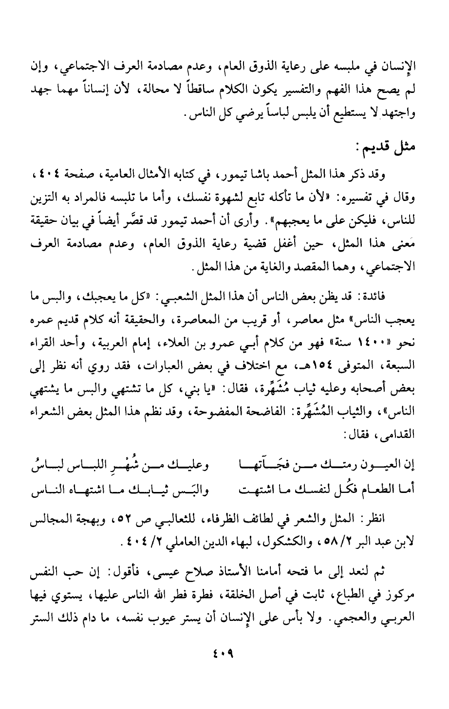 فائدة: قد يظن بعض الناس أن هذا المثل الشعبي: "كل ما يعجبك، والبس ما