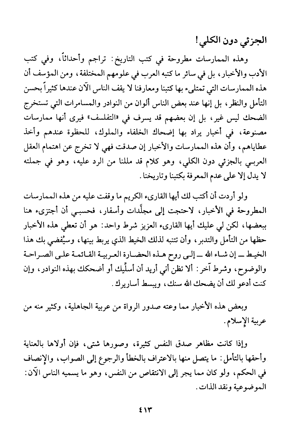 العربي بالجزئي دون الكلي، وهو كلام قد مللنا من الرد عليه، وهو في جملته