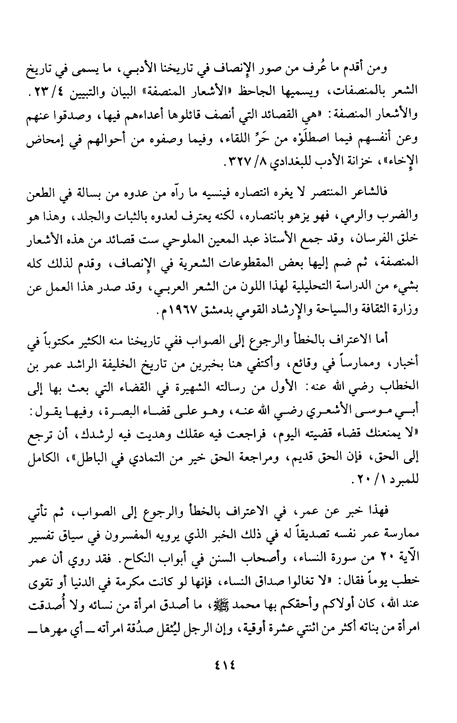 إلى الحق، فإن الحق قديم، ومراجعة الحق خير من التمادي في الباطل "، الكامل