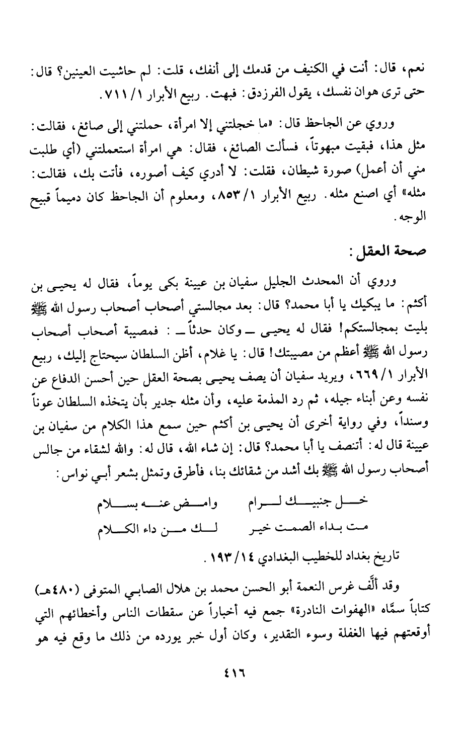 الأبرار 1/ 669، ويريد سفيان ان يصف يحيى بصحة العقل حين أحسن الدفاع عن