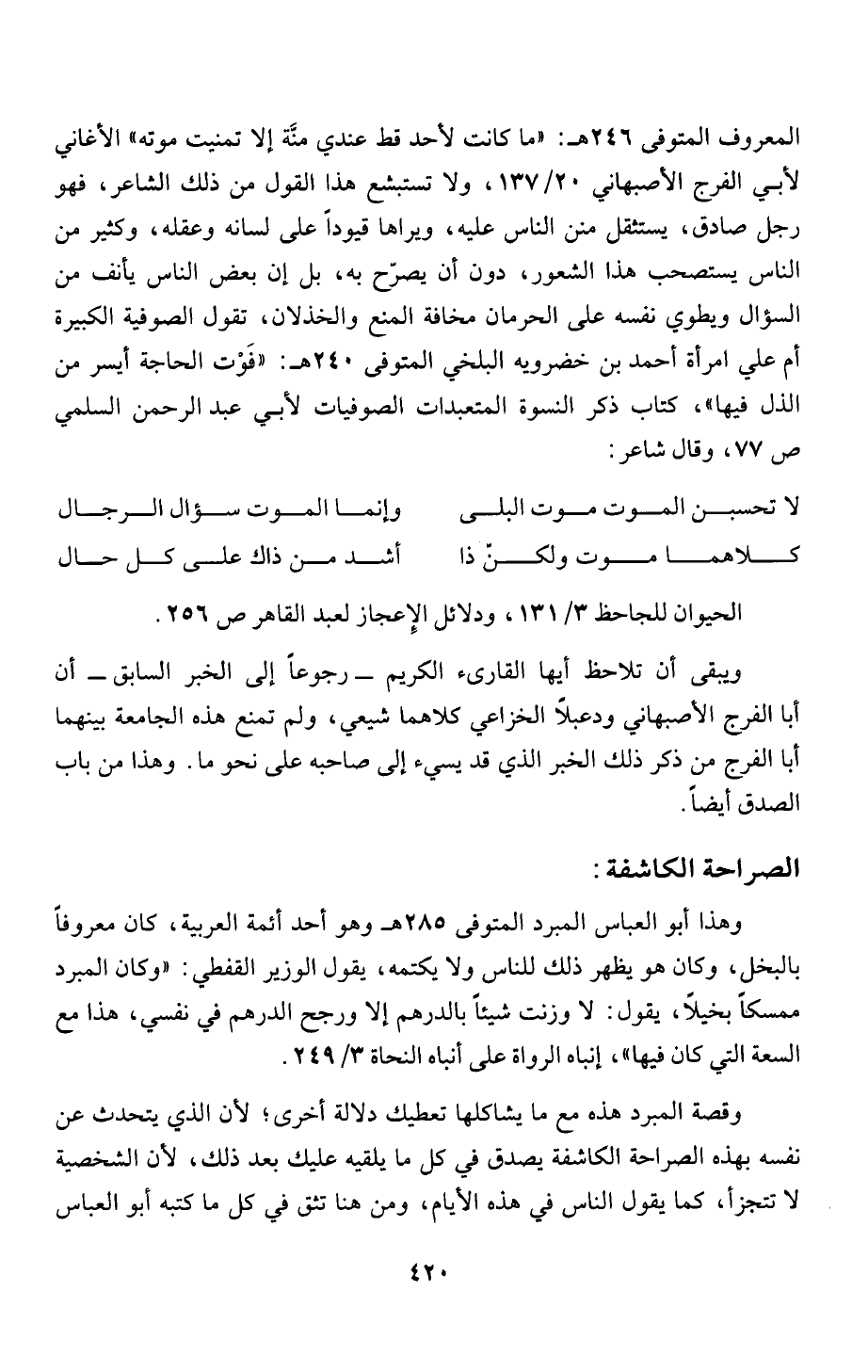 المعروف المتوفى 246 هـ: أما كانت لأحد قط عندي منَة إلا تمنيت موته " الأغاني