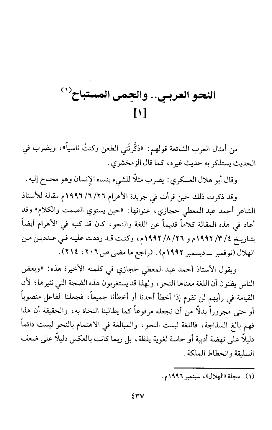 (1) مجلة "الهلال"، سبتمبر 996 1 م.