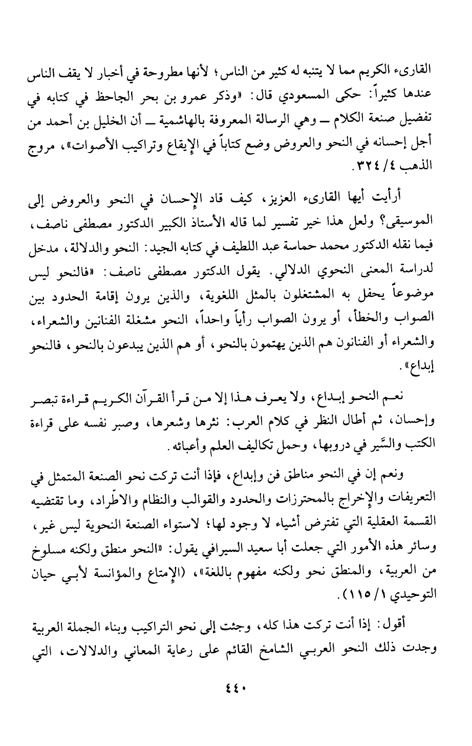 ارأيت أيها القارىء العزيز، كيف قاد الِإحسان في النحو والعروض إلى