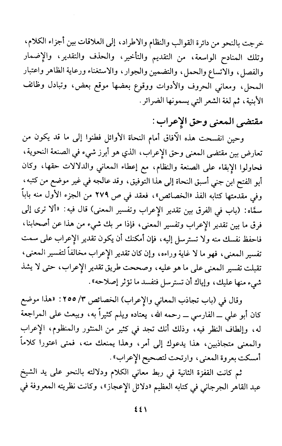 امسكت بعروة المعنى، وارتحت لتصحيج الِإعراب ".