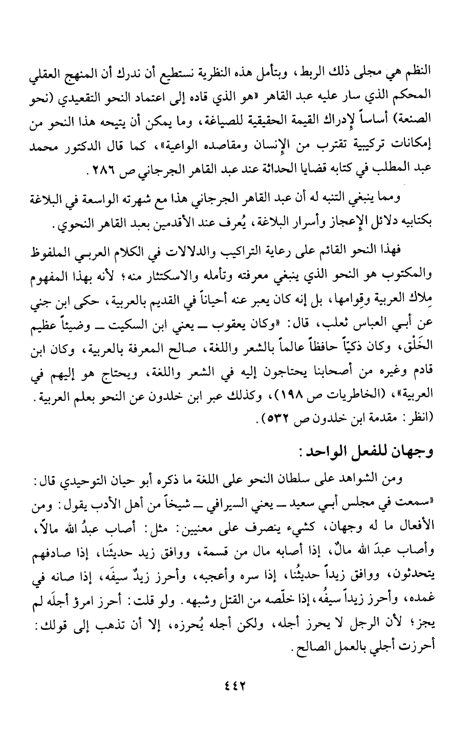المحكم الذي سار عليه عبد القاهر "هو الذي قاد 5 إلى اعتماد النحو التقعيدي (نحو