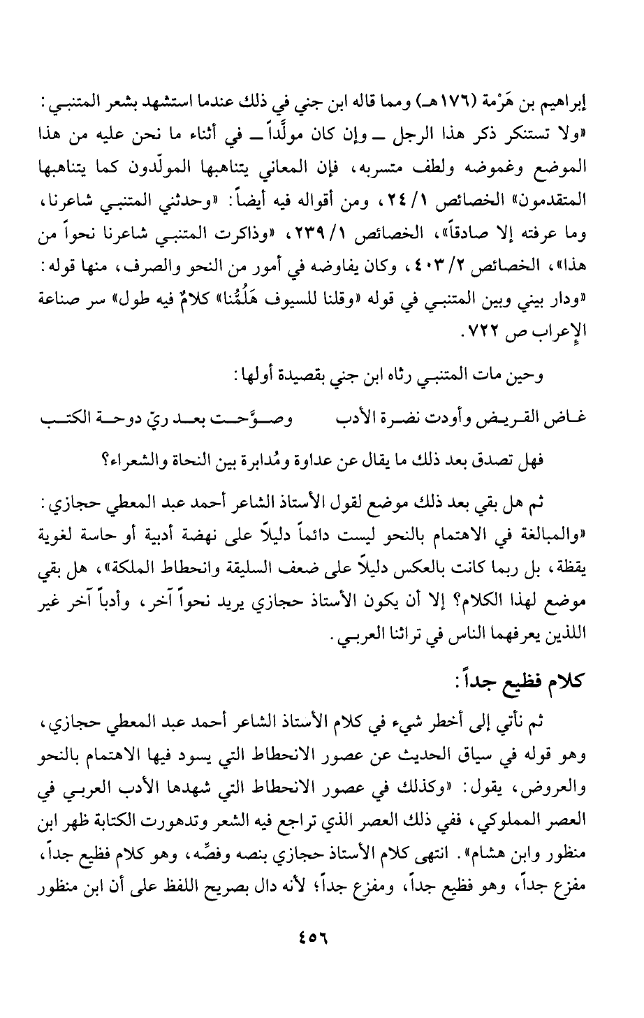 منظور وابن هشام ". انتهى كلام الأستاذ حجازي بنصه وفصِّه، وهو كلام فظيع جداً،