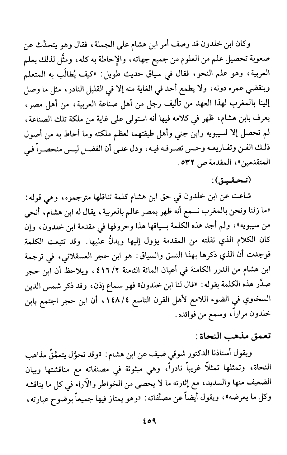 "ما زلنا ونحن بالمغرب نسمع انه ظهر بمصر عالم بالعربية، يقال له ابن هشام، انحى