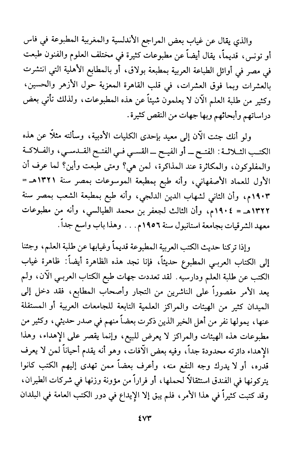 وإذا تركنا حديث الكتب العربية المطبوعة قديماً وغيابها عن طلبة العلم، وجئنا