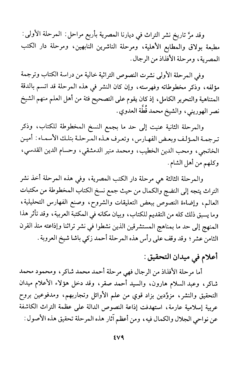 اما مرحلة الأفذاذ من الرجال فهي مرحلة أحمد محمد شاكر، ومحمود محمد