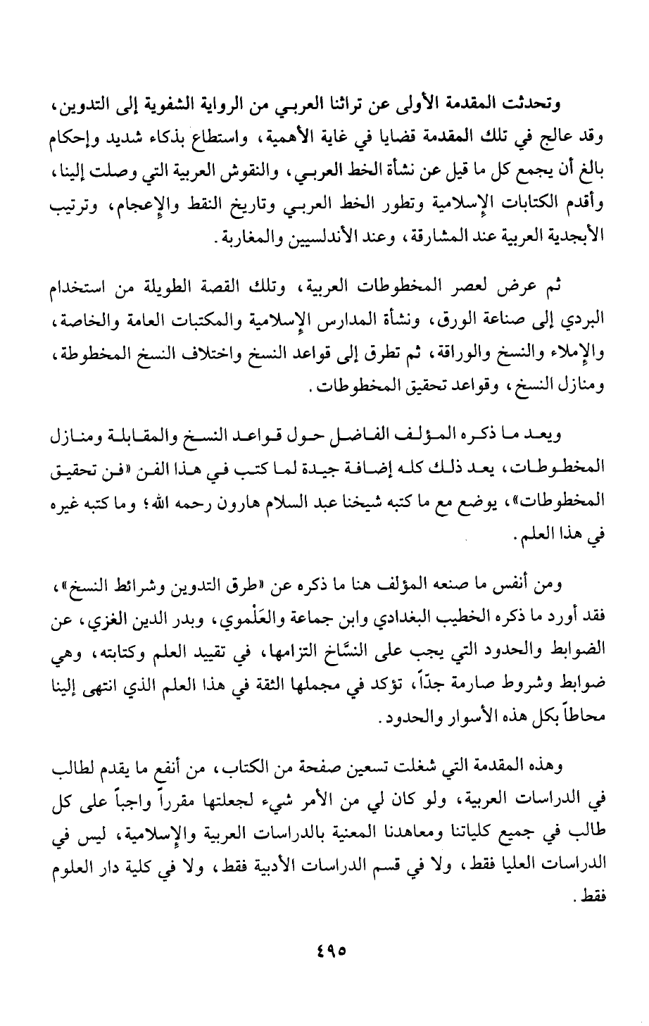 المخطوطات، يعد ذلك كله إضافة جيدة لما كتب في هذا الفن " فن تحقيق
