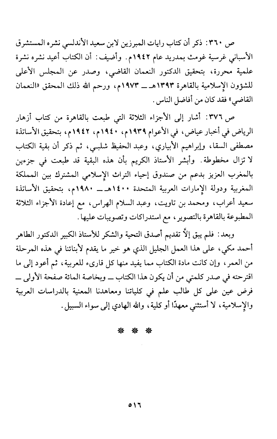وبعد: فلم يبق إلاَّ تقديم أصددتى التحية والشكر للأستاذ الكبير الدكتور الطاهر