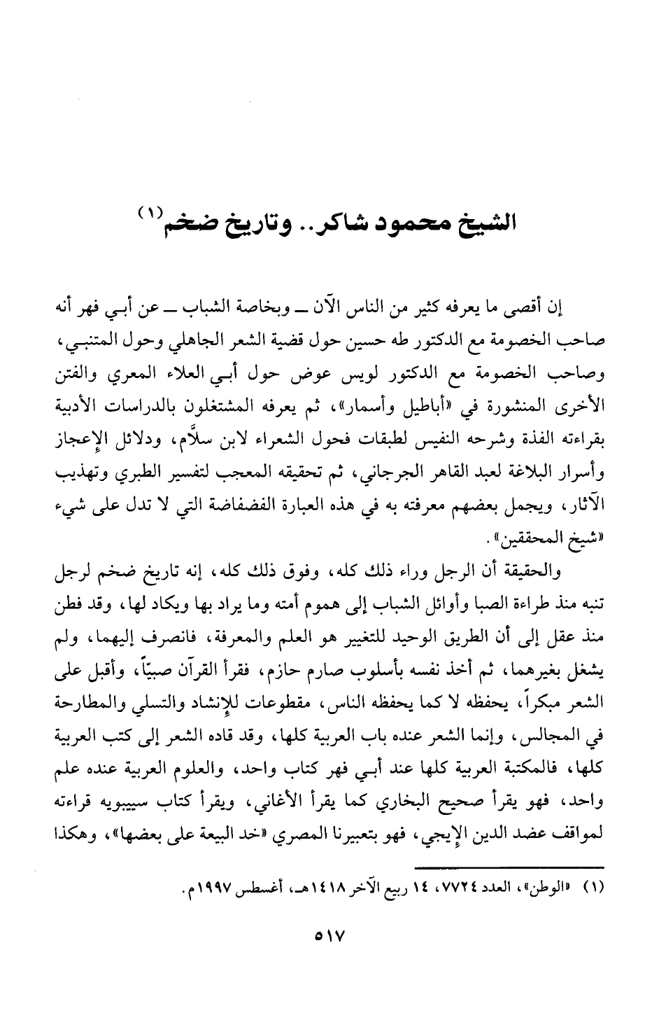 (1) "الوطن"، العدد 4 772، 4 1 ربيع الَاخر 18 4 1 هـ، أغسطس 997 1 م.