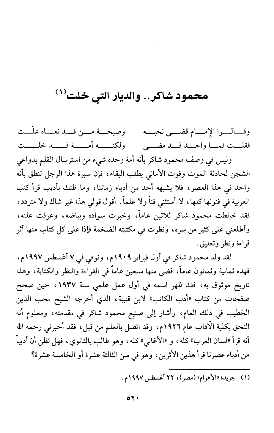 محمود شاكر .. والديار التي خلت (1)